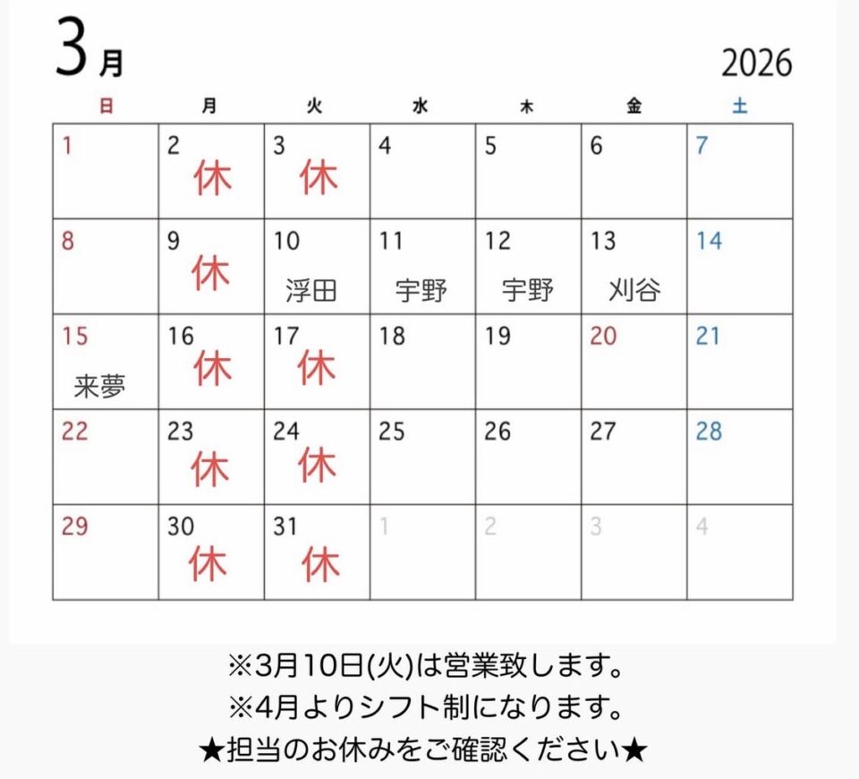 3月のお休みのご案内です♪